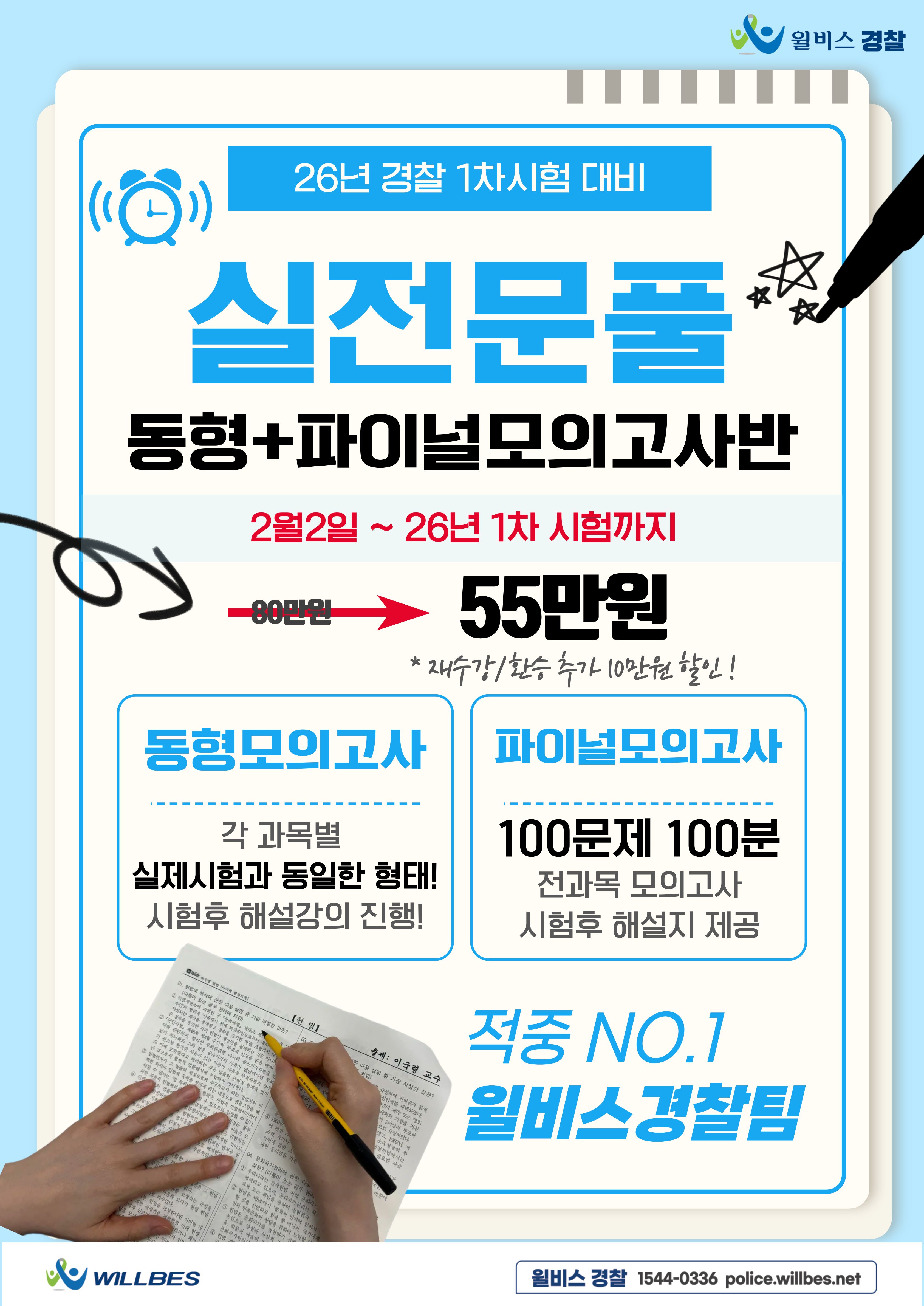 [OFF-LINE]윌비스 경찰학원 2026년 1차대비 ★동형모의고사 종합반★(2월 2일 개강)