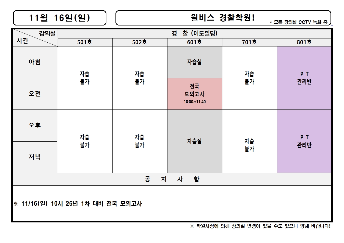11월 16일(일) 강의실배정표