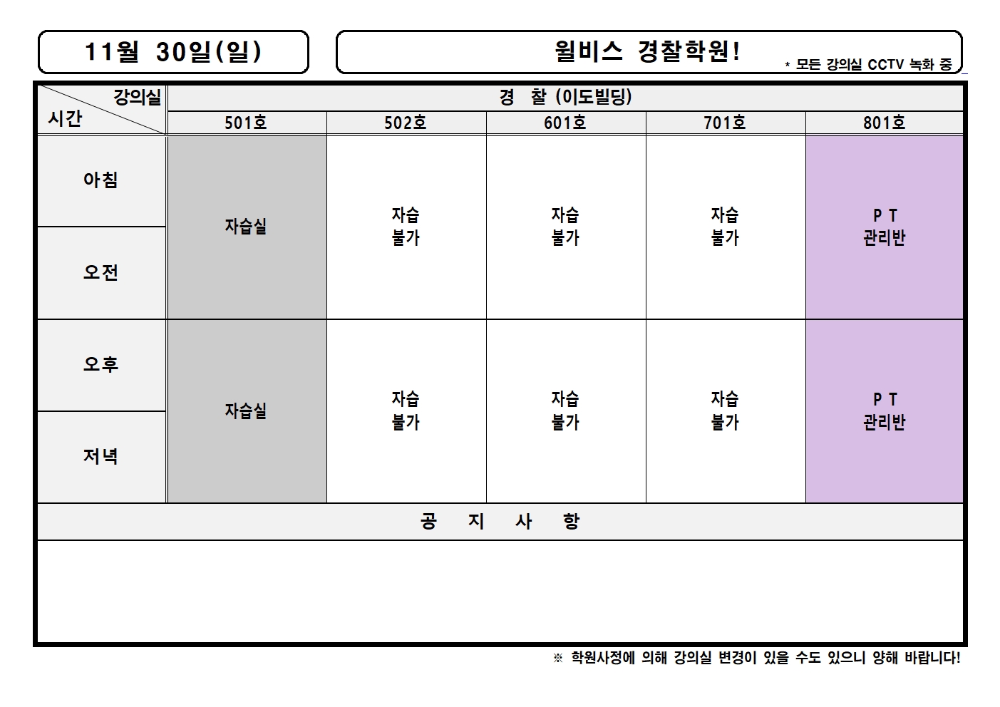 11월 30일(일) 강의실배정표