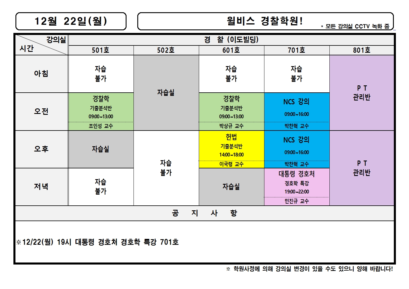 12월 22일(월) 강의실배정표