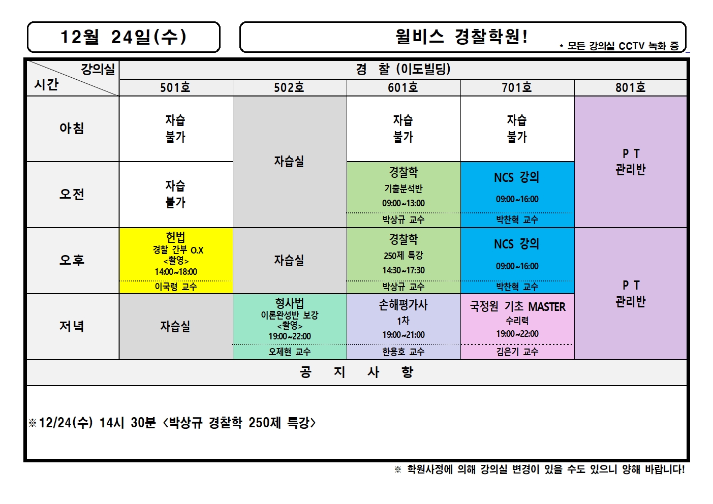 12월 24일(수) 강의실배정표