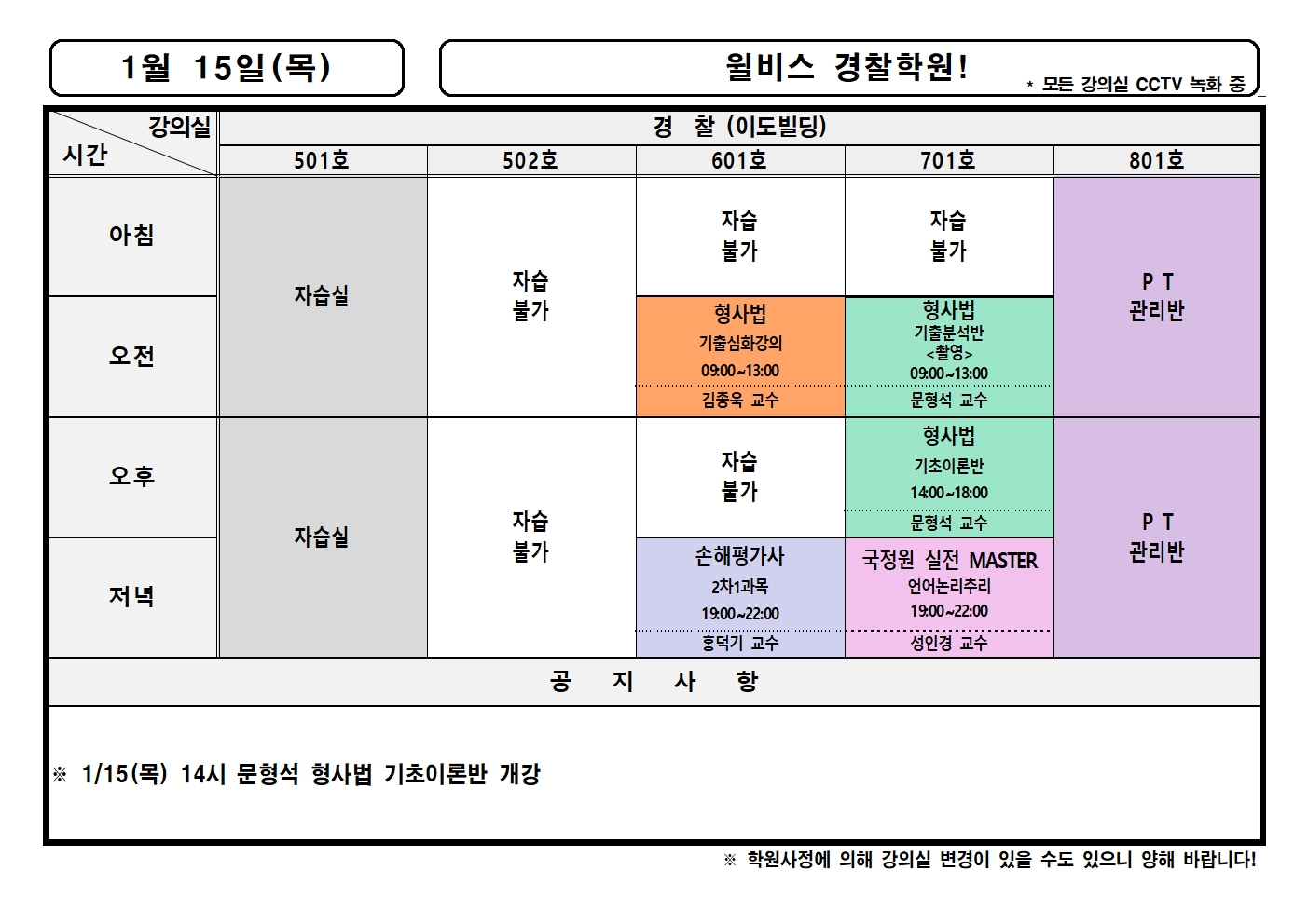 1월 15일(목) 강의실배정표