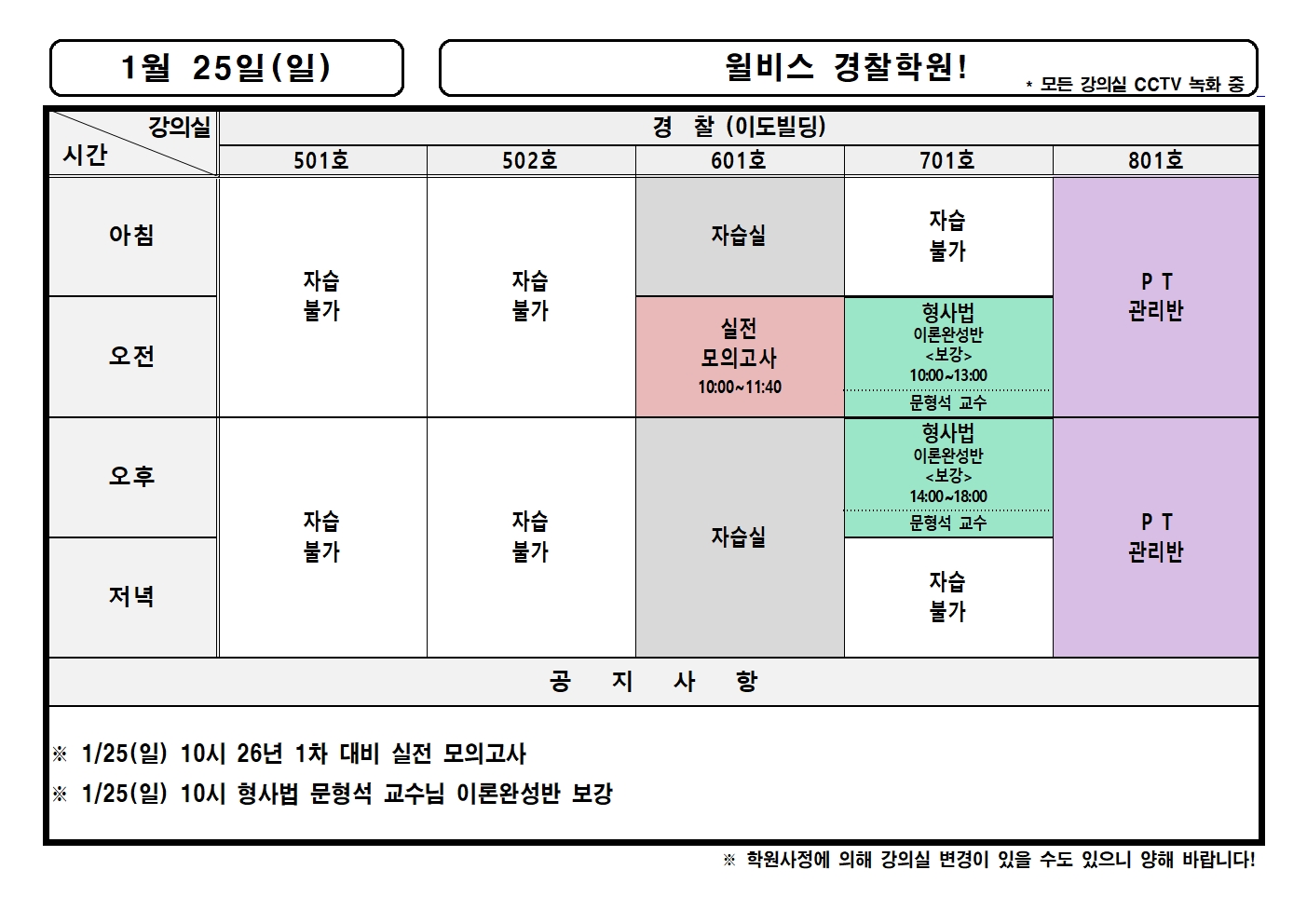 1월 25일(일) 강의실배정표