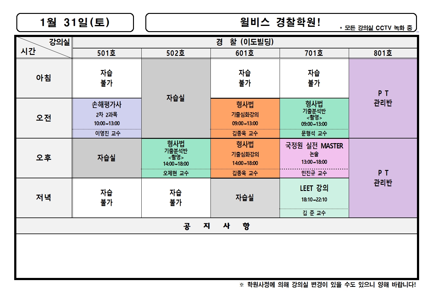 1월 31일(토) 강의실배정표
