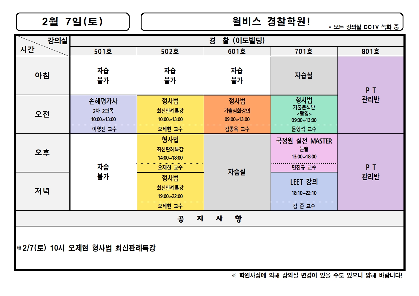 2월 7일(토) 강의실배정표