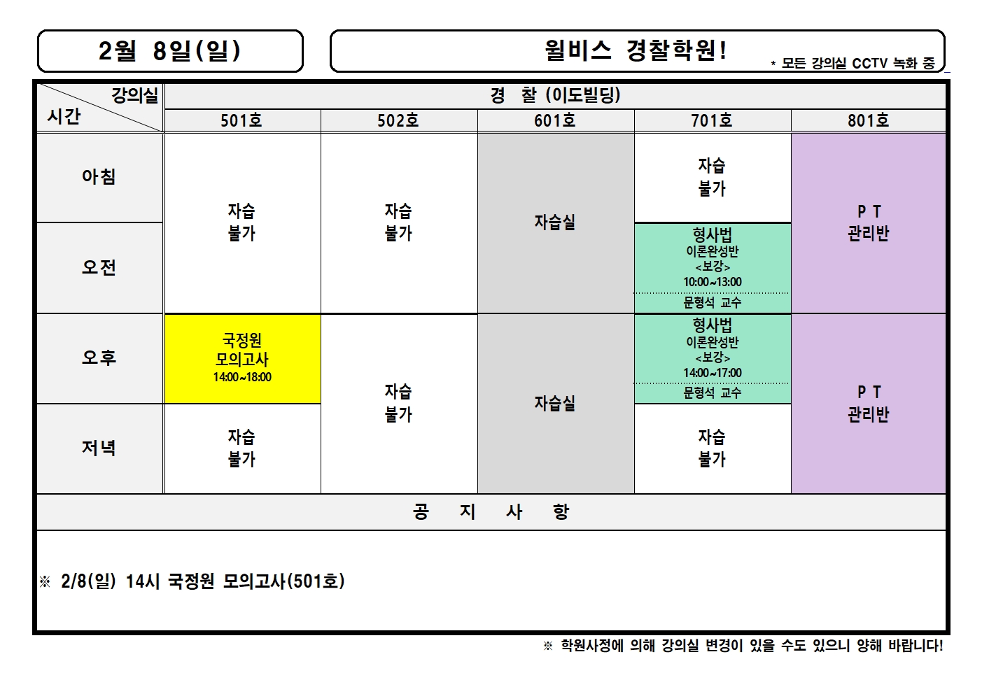 2월 8일(일) 강의실배정표
