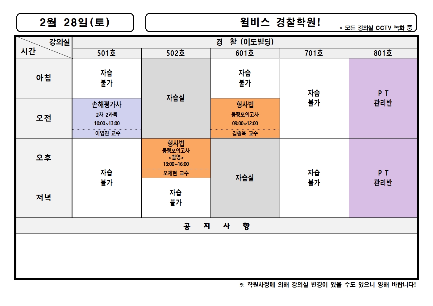 2월 28일(토) 강의실배정표