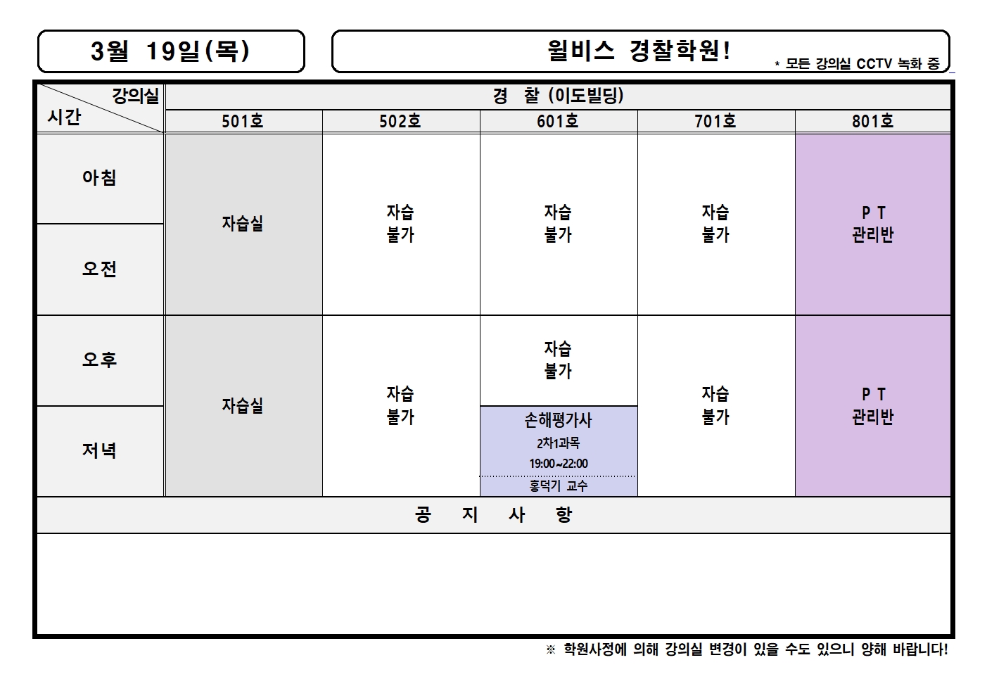 3월 19일(목) 강의실배정표