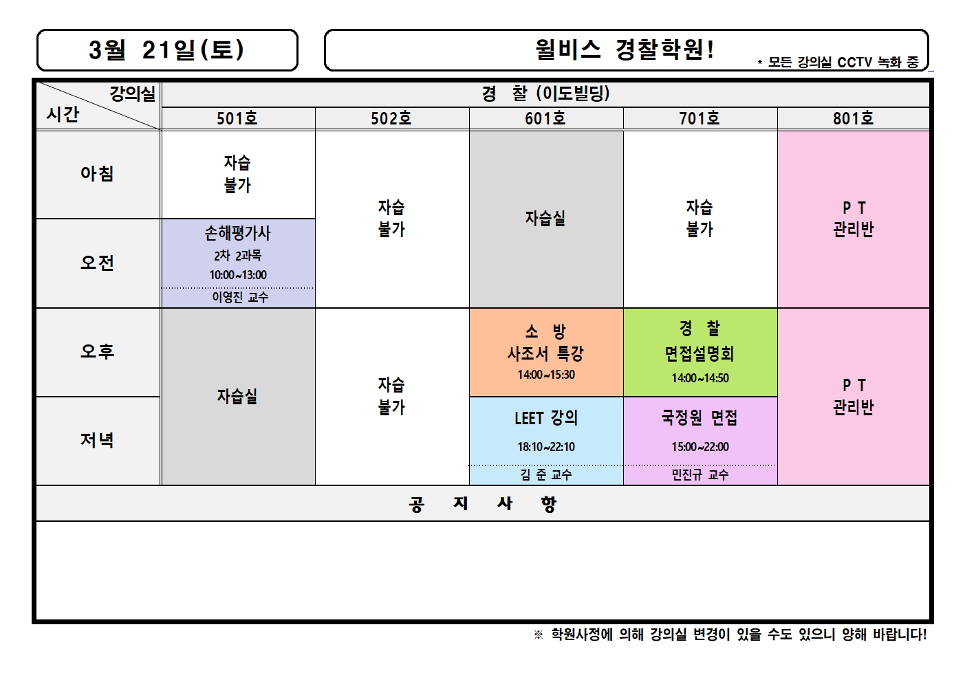 3월 21일(토) 강의실배정표
