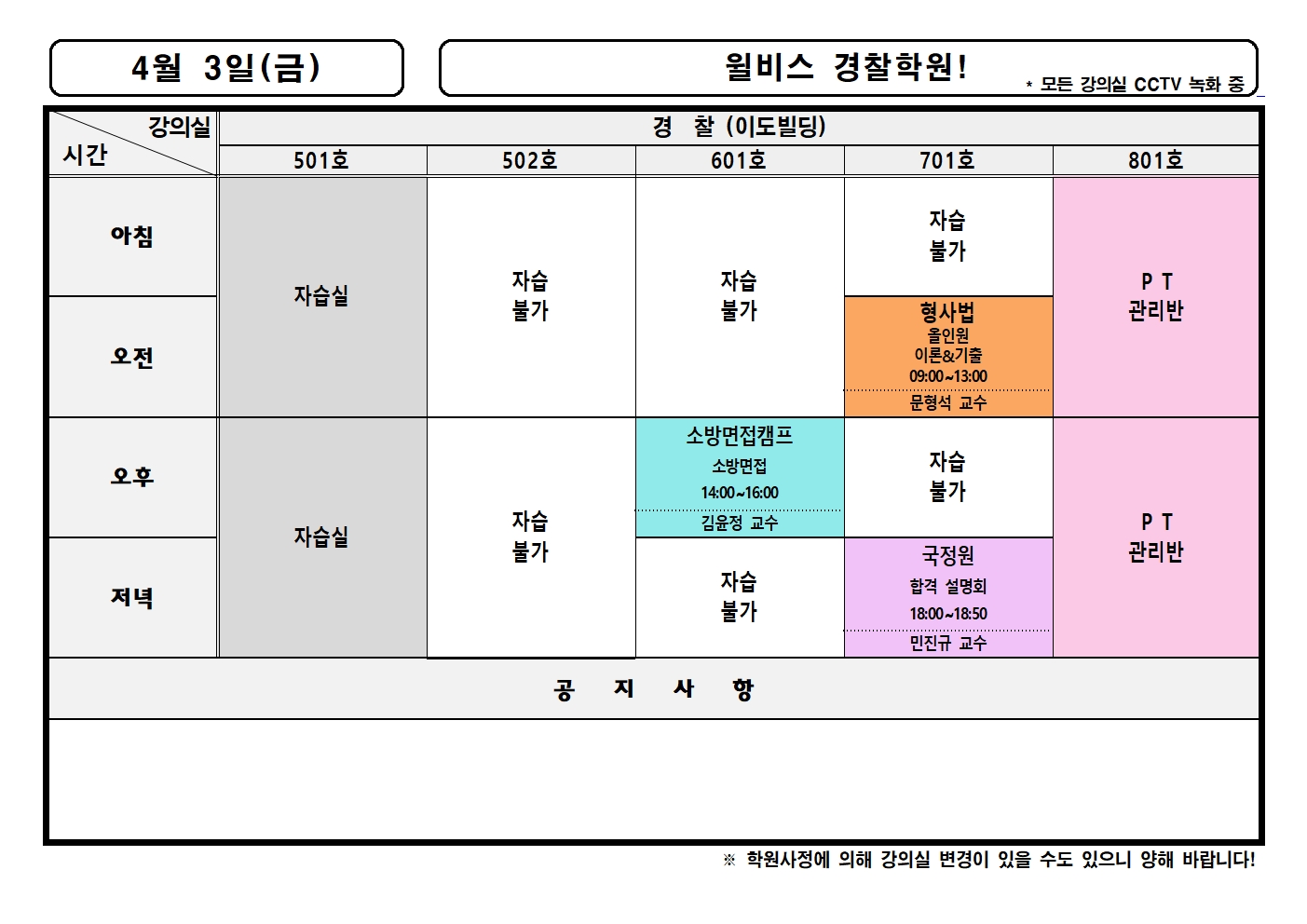 4월 3일(금) 강의실배정표