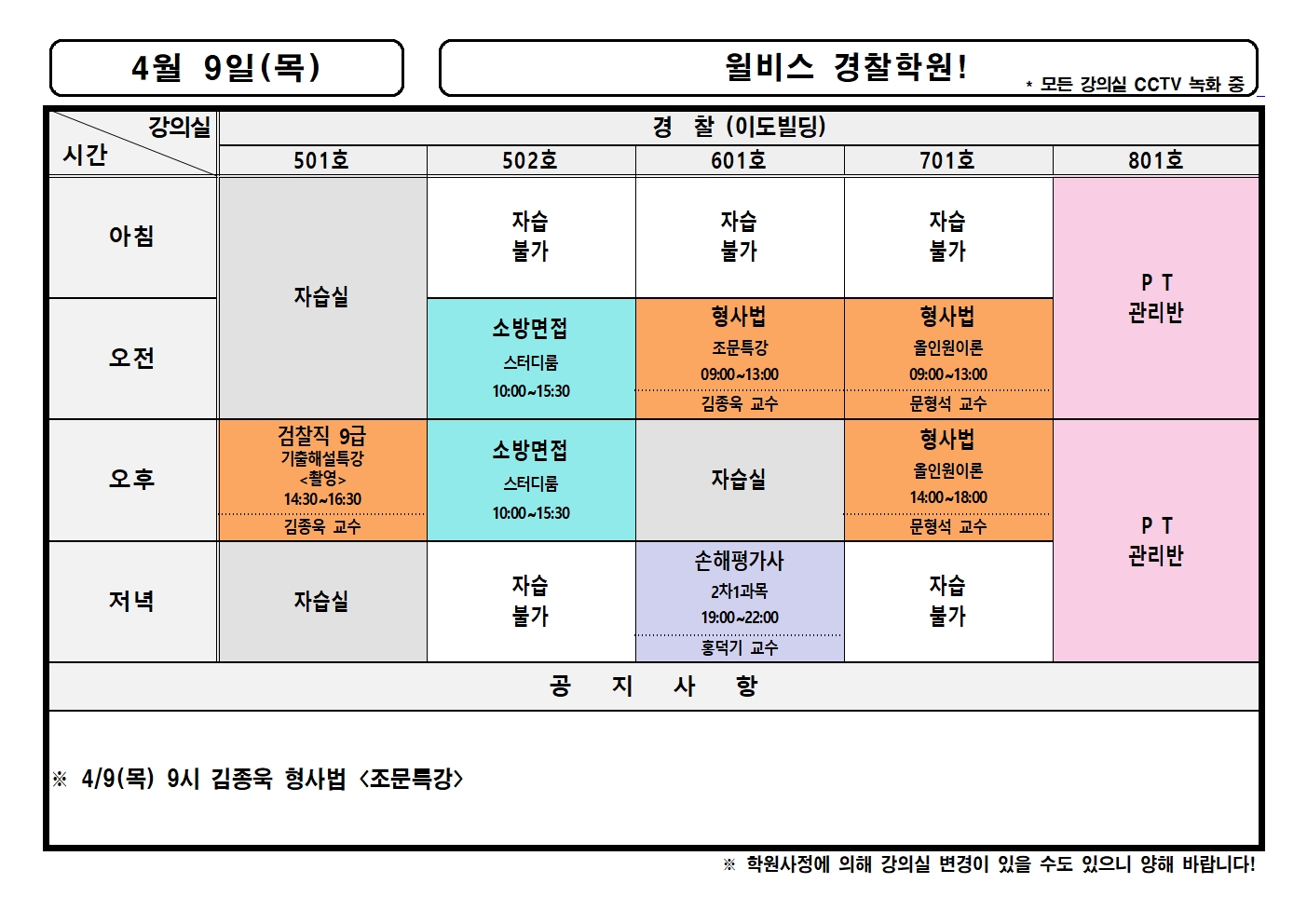 4월 9일(목) 강의실배정표