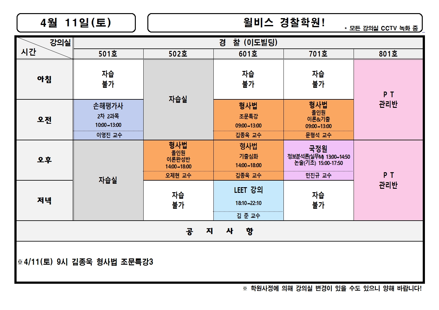 4월 11일(토) 강의실배정표