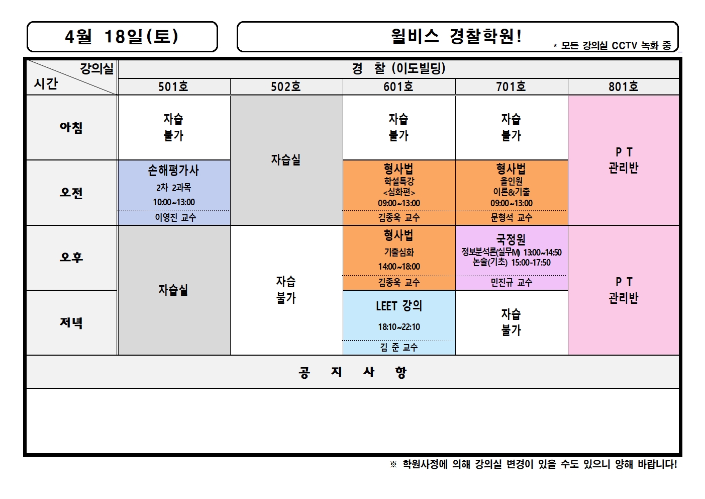4월 17일(금) 강의실배정표