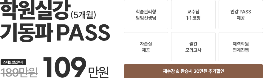 * 학원 PASS 구매 시 복습동영상 및 동형&파이널 모의고사 전체 교수진 강좌 제공