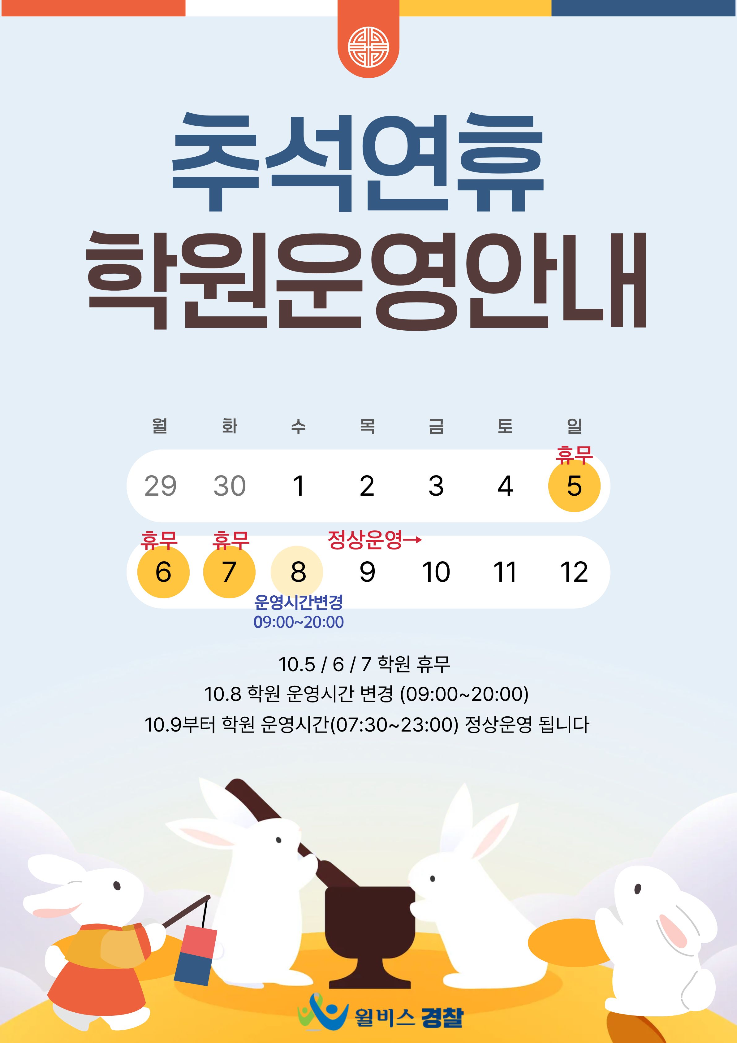 [윌비스경찰 학원]2025 추석연휴 학원운영안내