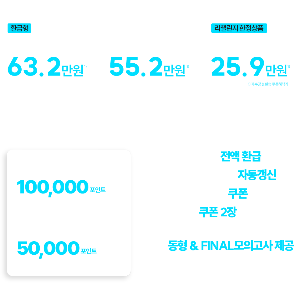 - 합격 인증 기간 내에 최종 합격 인증 자료 및 신청 서류 제출이 완료된 회원에게만 환급가능합니다.