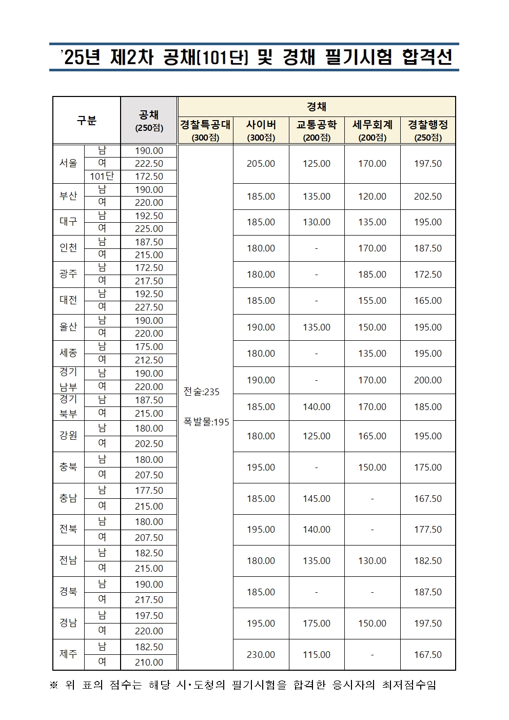 **25년 2차 공채 및 하반기 경채 필기시험 합격선을 붙임과 같이 공지합니다.